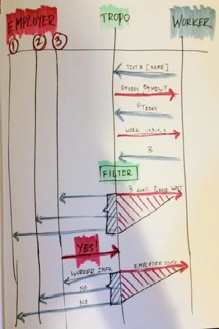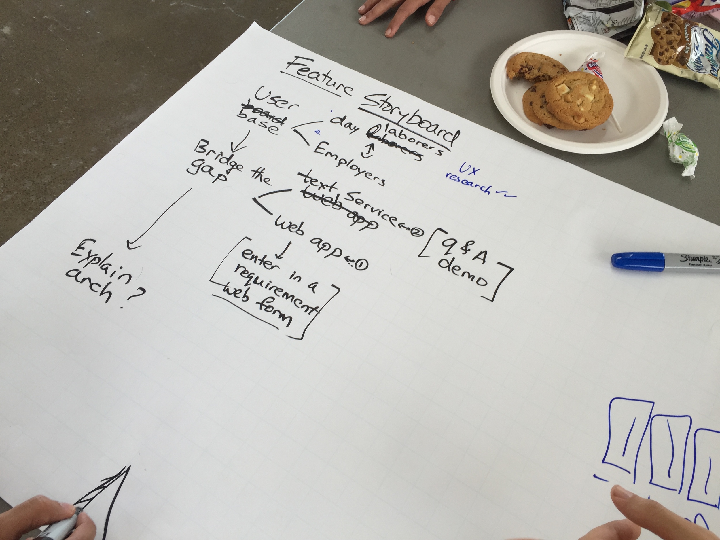 I brainstormed with my team about various ways to connect the employers and laborers using lo-tech options and narrowed down on the following key features -